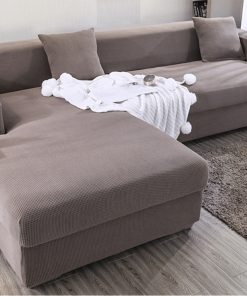 Plaid Fleece Solid Color Stretch L-Shape Sofa Cover(3 Seater +3 Seater)