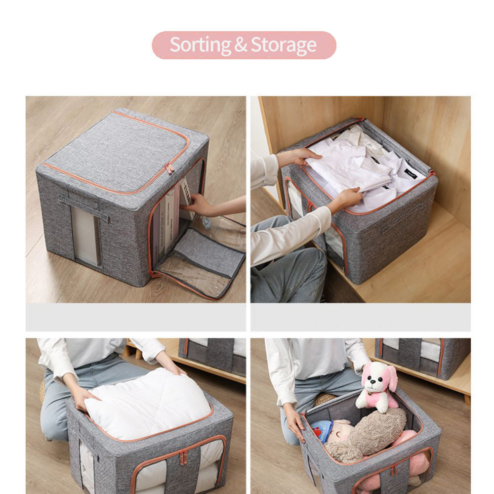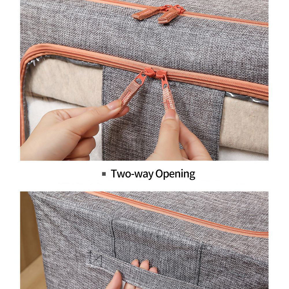 Our clothes storage organizer has 2 clear windows to view contents at glance with 2 zippered flap doors. Front window to view contents inside at glance without opening it, helps you identify items quickly.