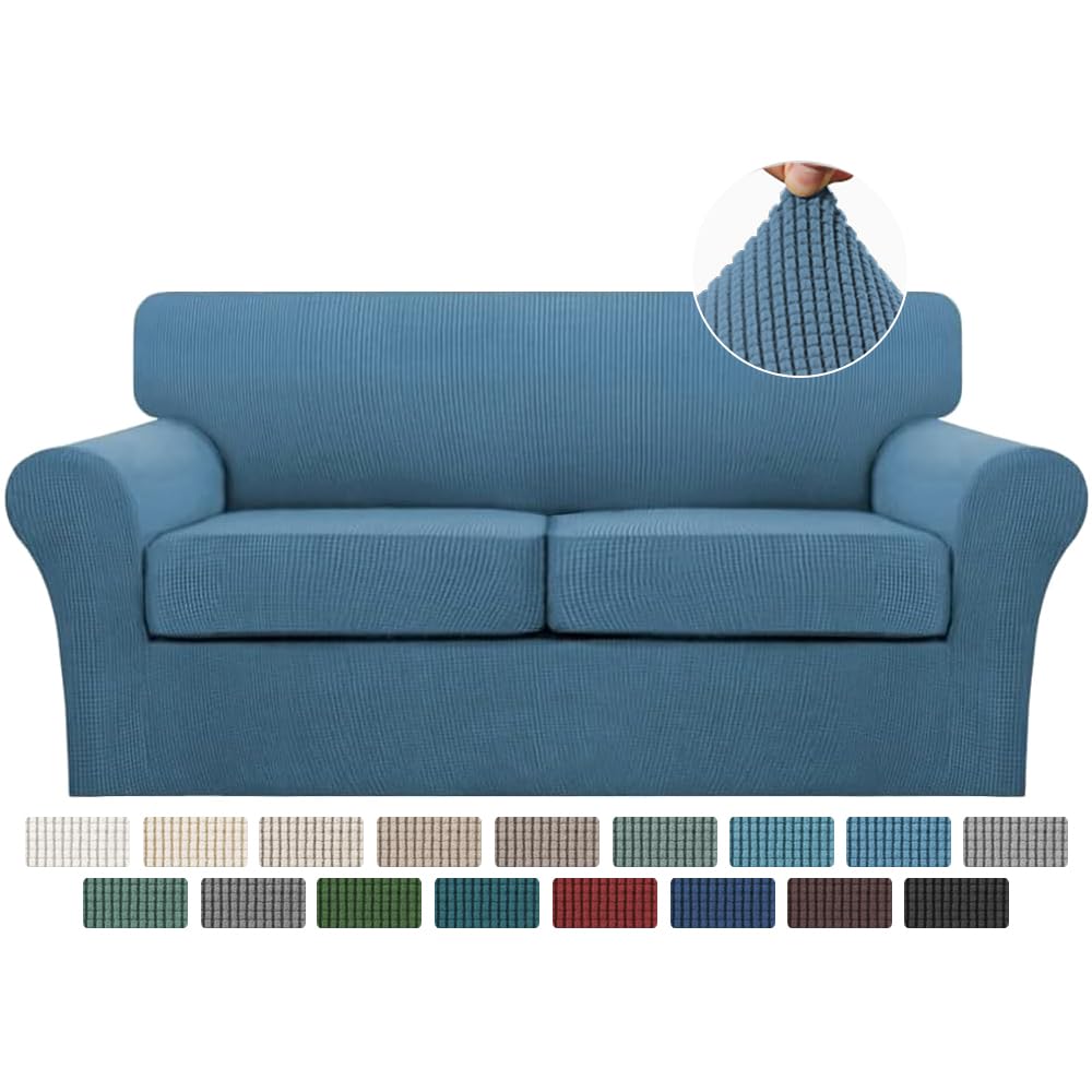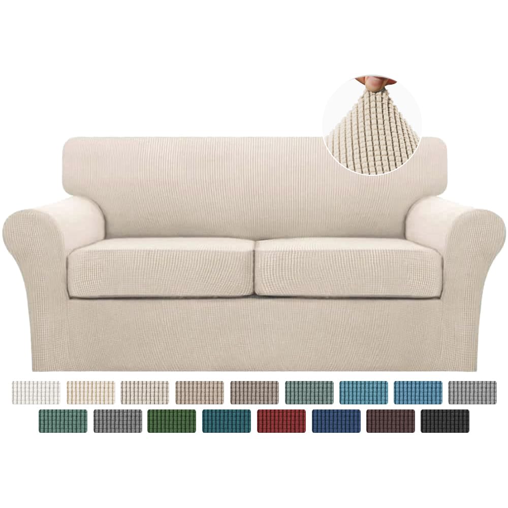 🌷【FULL PROTECTION】This slipcover is exclusive designed for sofas with individual cushions for creating a more custom-upholstered look. The cushion covers with deep elastic hems make a better fit and perfect stretch to all edges, smooth and wrinkle free. By covering cushion separately, more extra fabric can be tuck and require no re-tucking
