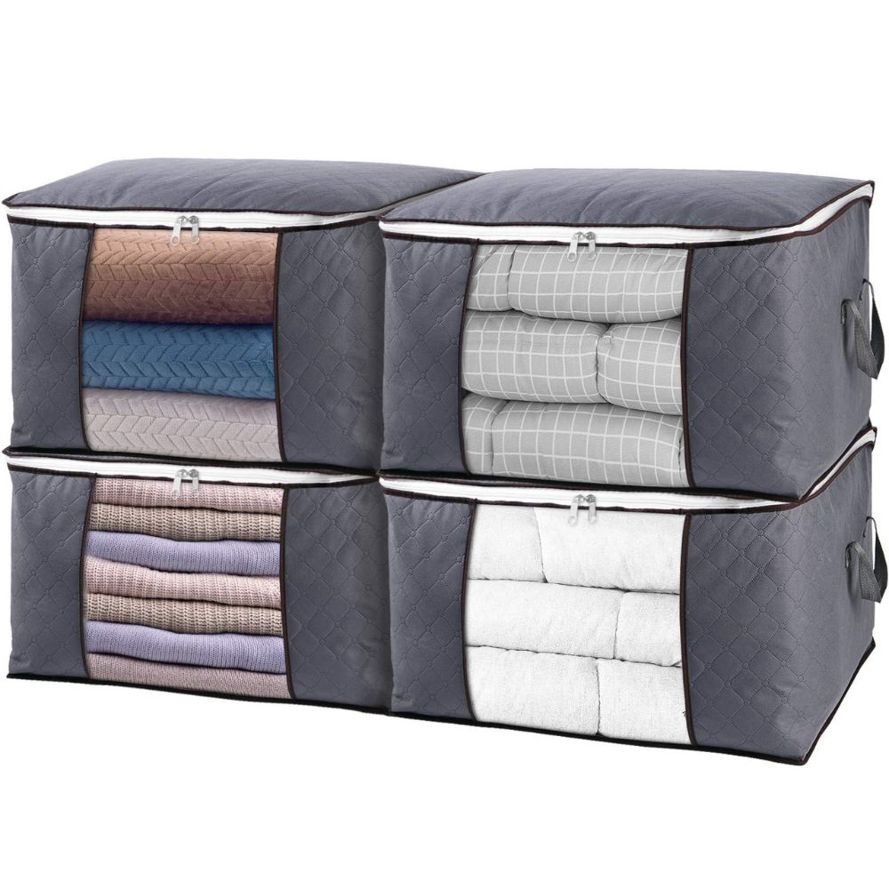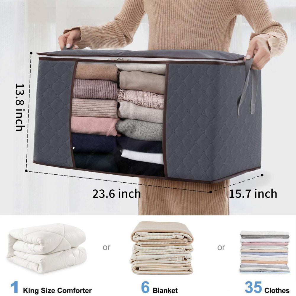 Stackable comforter storage bag with durable customized Linen material, soft fabric storage organizer bags are breathable which lets air in to keep things fresh.