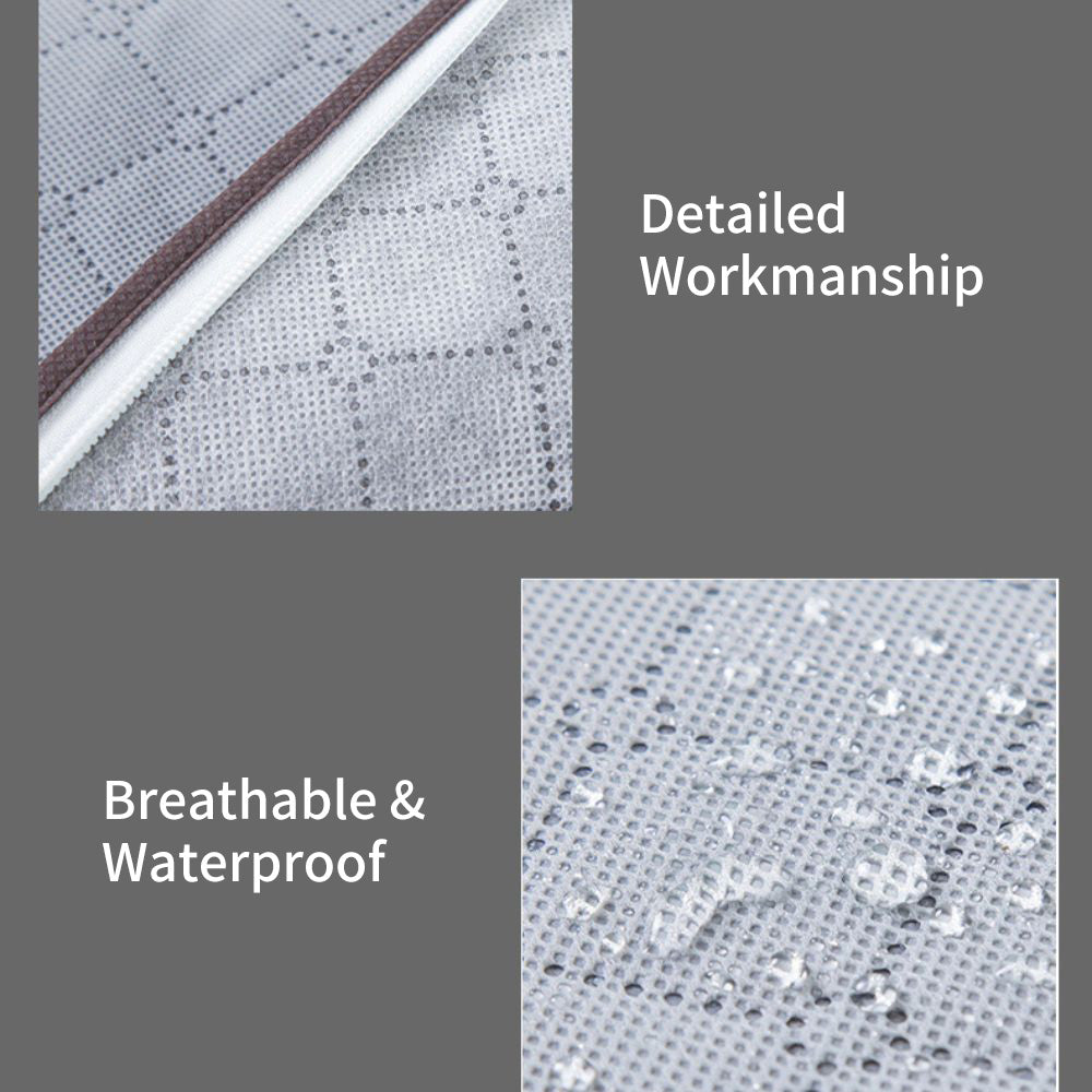 Heavy duty double zippers storage box help to open either side at a time and close stiches creates a nice seal for the items inside, perfect for storing off season clothes, comforter, pillow, towel, linen, sweater, rug, duvet etc.